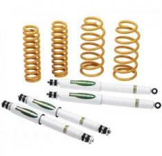 Suzuky Jimni Lift 50 mm fata de standard de fabrica al masinii noi Garantie 3 ani / 60.000km Imaginea prezinta alcatuirea kitului : 4 amortizoare Nitrogas, 4 arcuri elicoidale, kit bucsi corectie caster si amortizor directie Pret adunat al componentelor 948 euro, discount 68 euro.