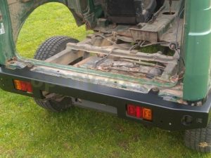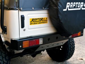 Bara spate din aluminiu de la Raptor 4×4 Italia, compatibila cu toate modelele de Suzuki Samurai. Se refolosesc lampile stop ale masinii. Este o bara foarte usoara, confectionata din aluminiu, cu suporturile de montaj pe sasiu din otel. Se poate livra in culoarea Negru sau in culoarea aluminiului.