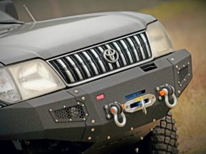 Bara protecte fata pentru Toyota Land Cruiser 120/125, cu suport de troliu incorporat. Bara de la MORE 4×4 este din otel si este vopsita cu vopsea structurala de culoare neagra, similara Raptor Coating. Este o bara solida cu o forma apropiata de cea originala, dar care are unghi de atac imbunatatit si permite montarea unor roti…