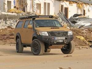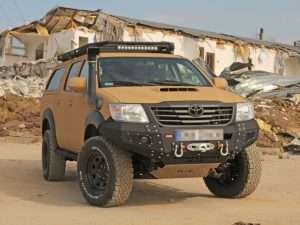 Bara protecte fata pentru Toyota Hilux Vigo 2011-2015 (facelift), cu suport de troliu incorporat. Bara de la MORE 4×4 este din otel si este vopsita cu vopsea structurata de culoare neagra, similara Raptor Coating. Este o bara solida cu o forma apropiata de cea originala, dar care are unghi de atac imbunatatit si permite montarea unor roti…