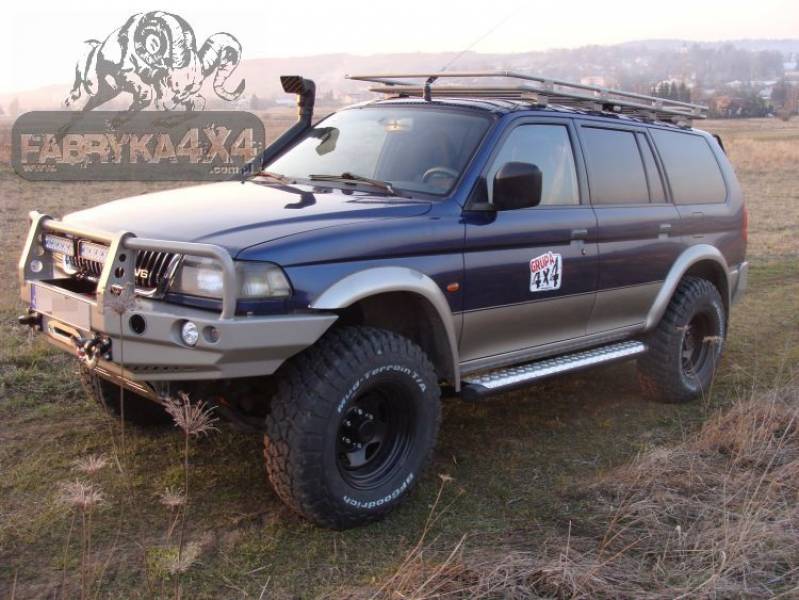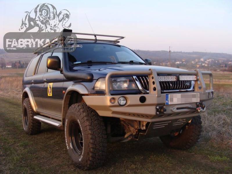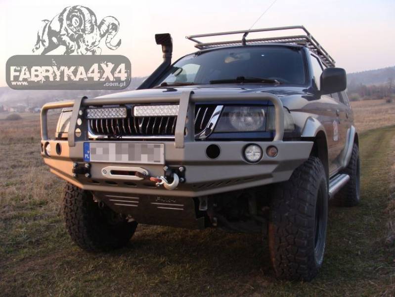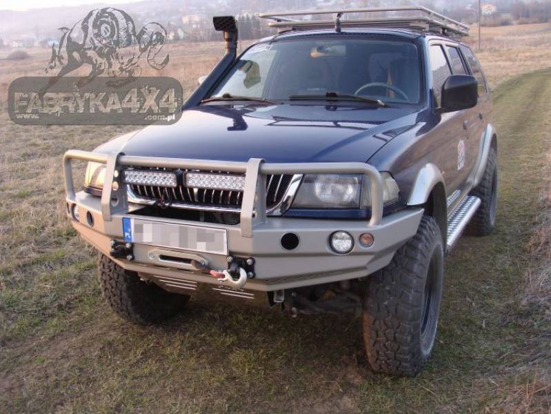 Bara de protectie fata cu bullbar si suport de troliu incorporat pentru Mitsubishi Pajero Sport productie 1996-2000