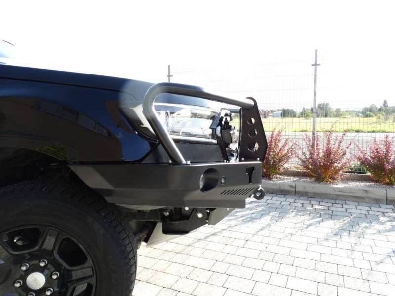 Bara de protecție are orificii de montare pentru suporti de prindere, orificii montare hi-lift si doua orificii pentru lumini cu halogen.
