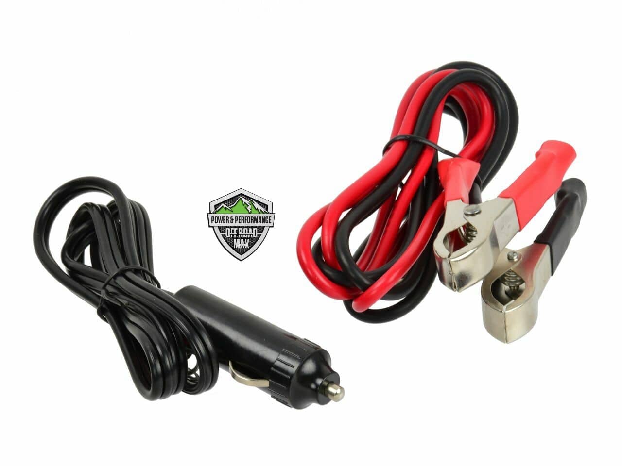 Setul include un cablu terminat cu un dop care se potrivește cu priza brichetei și un cablu terminat cu cleme.