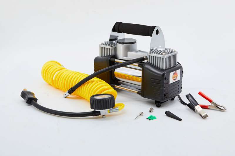 Compresor de aer cu doua pistoane de la Terrain Tamer de calitate foarte ridicata, avand si accesorii incluse: furtun spiralat cu cuple rapide, manometru, geanta depozitare. Are functii de umflare si dezumflare. Aspect robust cu finisaj deosebit. Poate umfla roti cu diametrul de pana la 33”.