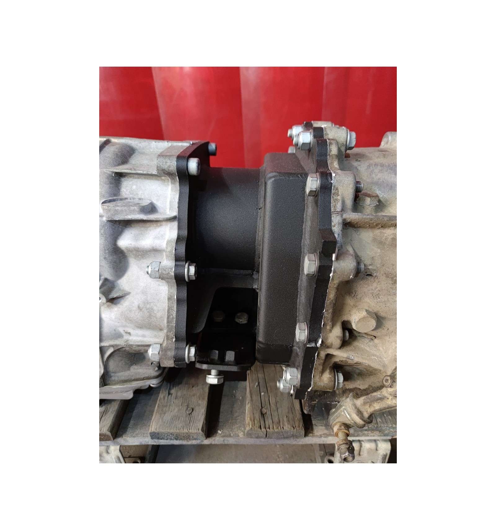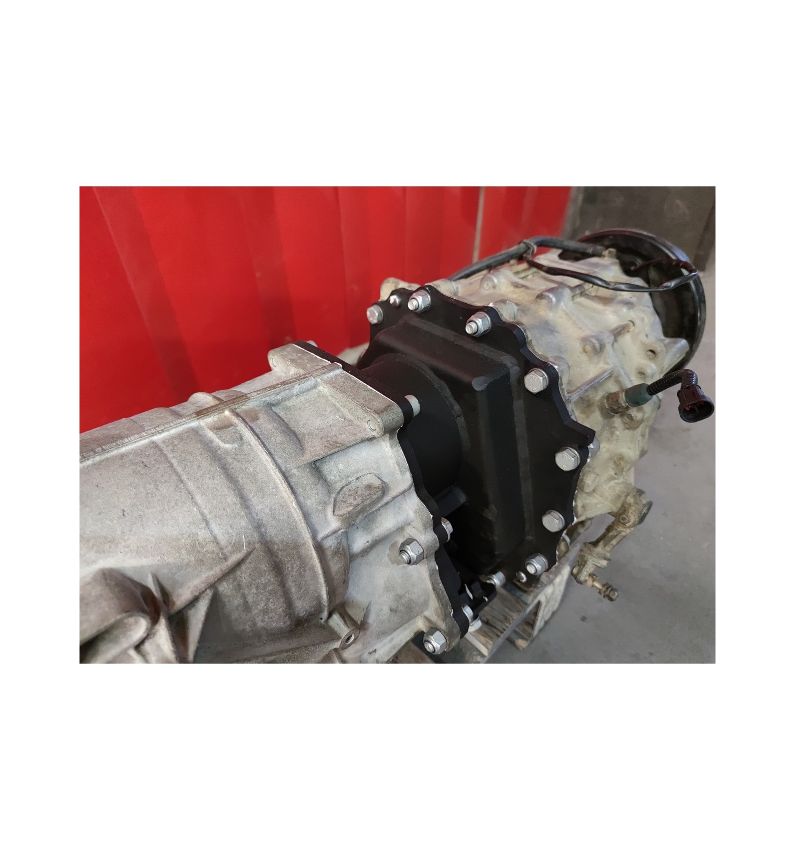 Un kit complet de montare care vă permite să conectați cu ușurință și rapid cutia de viteze BMW 8HP70X la reductorul Nissan Patrol în timpul conversiei motorului.