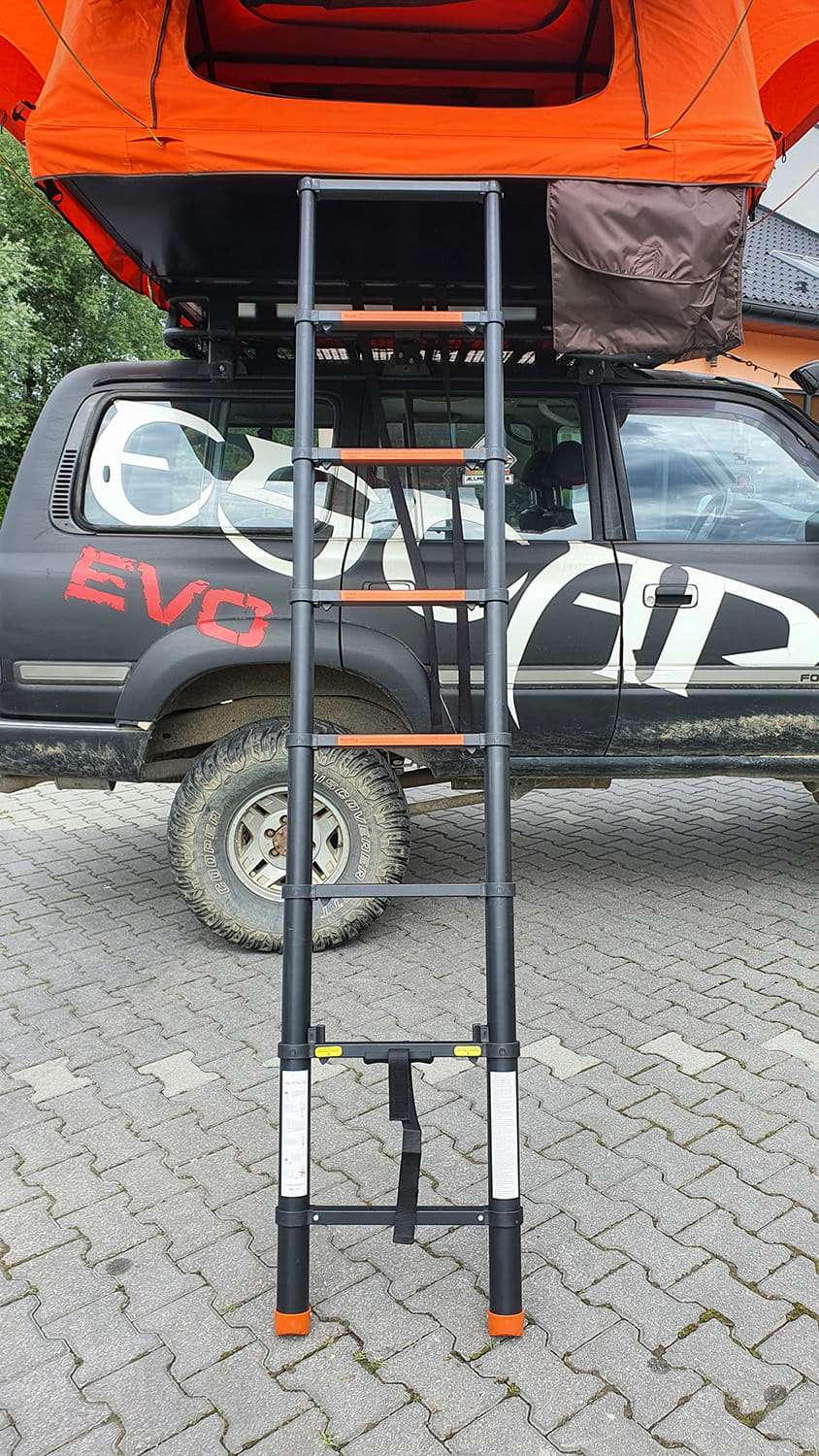 -Setul include o scară telescopică neagră de 2,3 m și iluminare USB LED.