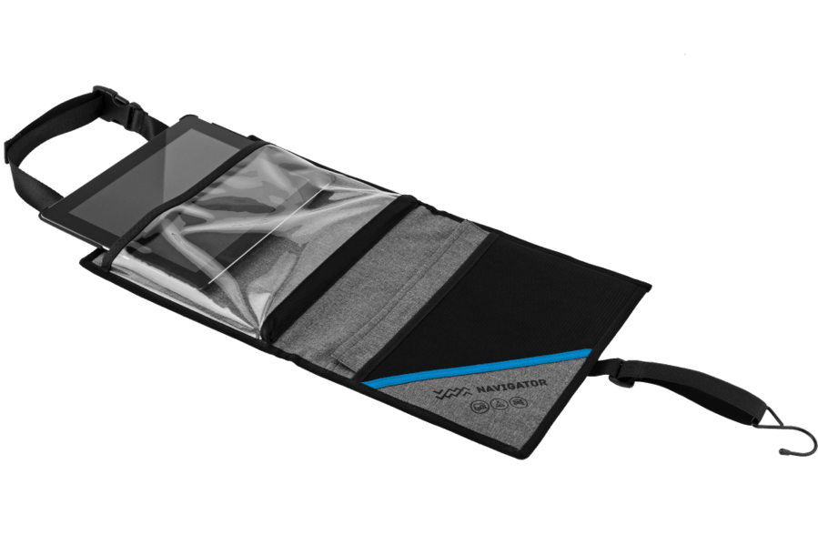 Compartiment PVC clar pentru tableta (max 12”), compatibil inclusiv cu huse de protectie tableta.