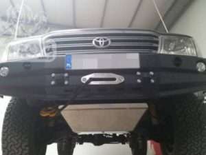 Bara de protecție frontală cu placă pentru troliu și bull bar , dedicată modelului Toyota Land Cruiser J100 98-04 versiune inainte de facelift Structura principală a barei de protecție este realizată din tablă de 3 mm , iar placa de sub troliu și dispozitivele atașate ramei din tablă de 5 mm . Produsul este tăiat cu…