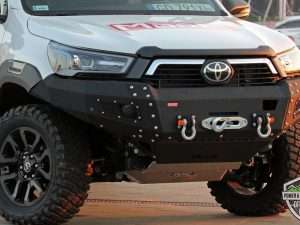 Bara Fata compatibila cu Toyota Hilux Revo (dupa 2020) MORE4X4 Caracteristici: Bara protecte fata pentru Toyota Hilux Revo/Rocco, cu suport de troliu incorporat. Bara de la MORE 4×4 este din otel si este vopsita cu vopsea structurala de culoare neagra, similara Raptor Coating. Este o bara solida cu o forma apropiata de cea originala, dar care…