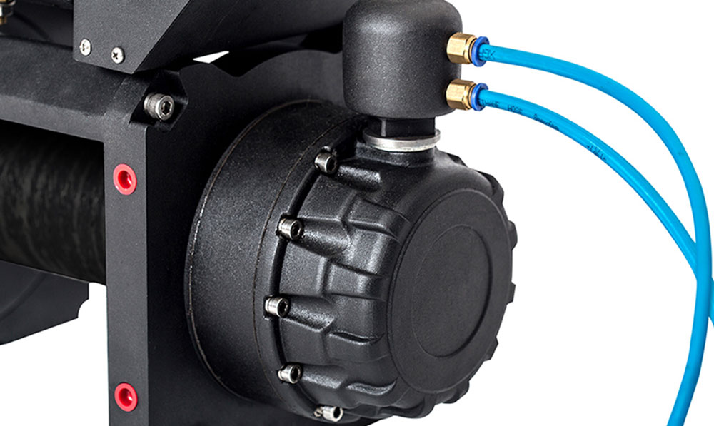 FROM SUA – “Full Range Of Motion” ofera un troliu heavy-duty si cu performante ridicate: viteza de troliere mare, atat fara cat si in sarcina, ambreiaj cu aer comprimat, 2 motoare cuplate la tambur prin lant, raport transmisie: 138:1.