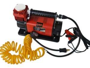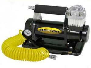 Compresor de la Smittybilt USA de buna calitate, avand si accesorii incluse: furtun spiralat de 7 metri cu cuple rapide, manometru, geanta depozitare. Are functii de umflare si dezumflare. Aspect robust cu finisaj deosebit. Poate umfla roti cu diametrul de pana la 33”. Caracteristici: -Alimentare 12 V la bornele bateriei; cablu de 2.5 metri. -Debit de pana la 72…